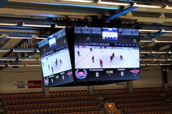 Plåtson fick uppdraget att installera mediakuben i Arena Oskarshamn inför hockeysäsongen.
